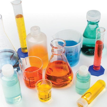 Class-A volumetric glassware, borosilicate beakers, and durable plastic labware.