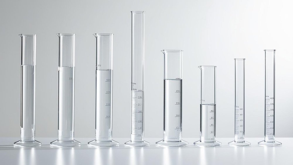 Graduated cylinders for accurate liquid volume measurement.