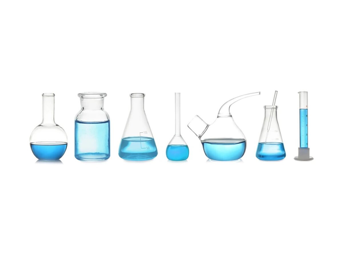 Erlenmeyer, round-bottom, and specialty flasks for laboratories.