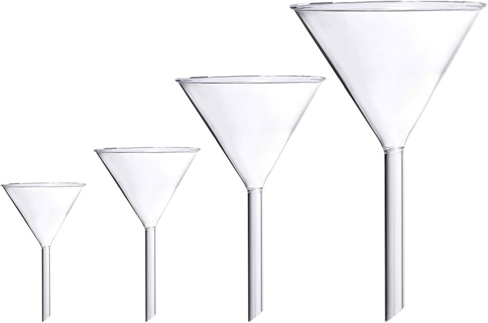 Glass and plastic funnels for filtration and liquid transfer.