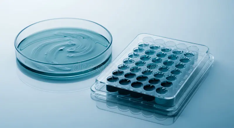 Glass and plastic petri dishes for microbiology and testing.